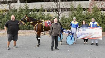 AHDC President Anthony Verruso led the check presentation of a $2,000 donation in the winner’s circle following the afternoon’s fourth race, won by Neil Glasser driving Boiler Maker. Harrah’s Philadelphia’s assistant race secretary Jennifer McGlinchey joined the presentation alongside Glasser and George Lange, trainer of winning horse Boiler Maker.