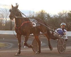In race eight, Siegelman sat the pocket with He’s Electric behind Miller and the even-money favorite Just Plain Loco. In the stretch, he was able to sneak by to win by a nose and upset the favorite at 9-2. This made a training double for Mark Ford, who had teamed up with Siegelman earlier in race four to win with Buchannon Hanover.
