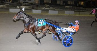 Vernon, NY – Aime Hanover (Rene Goulet) and Little Instigator (Leon Bailey) captured the co-features at Vernon Downs on Saturday (Oct. 18).