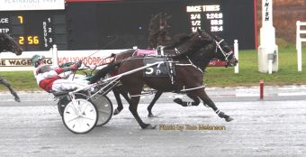 Plainville, MA — For the first time this year, all three weekly $25,000 Open features were held on the same day on Monday (Nov. 10) afternoon, and Always Bstunning N by far put in the most impressive performance of the triumvirate after winning the distaff pace in 1:50.4 over an off track and through unfavorable weather conditions.