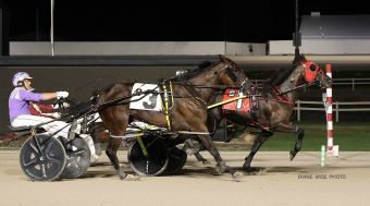 Guard The Fire (Cameron McCown) won the fourth division in 1:54.4. The Brian Brown trainee led wire to wire, posting fractions of :28.3, :58.3, and 1:26.3 en route to winning by 2-3/4 lengths over second-leg winner Judge Me Again (Trevor Smith) in second place. Racin Like A Star (Justin Irvine) was third. Guard The Fire won a division of the opening leg of the BSS at Northfield in 1:55.2 in her only other victory this season. She also has two seconds and two thirds in 10 seasonal starts. She has five wins in 20 career starts and is owned by Hutchison Harness LLC.