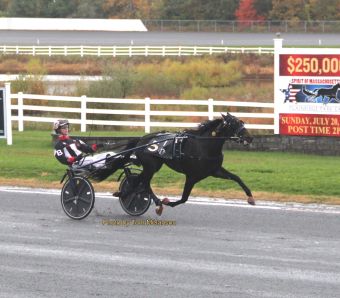 Plainville, MA — Heavy morning rains cleared just before post time at Plainridge Park on Monday (Oct. 20) as the third leg of 2-year-old state-bred trotters and pacers took the track for their share of the $3.2 million Massachusetts Breeders Stakes.