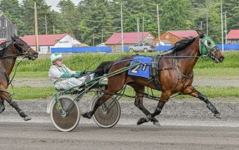 Down the lane, everyone’s favorite octogenarian urged his mare to keep rolling as she hit the timer in 2:02.3, scoring by two lengths. Also owned and trained by Nadeau the mare paid $5.80 to win.