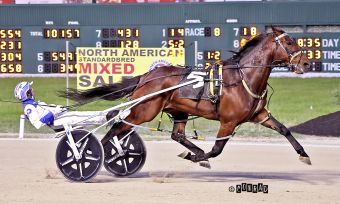 Bythemissal, a 6-year-old Downbytheseaside gelding, is owned by Burke Racing, Eric Good, Rich Lombardo and Weaver Bruscemi. The victory Saturday was in only his second seasonal start of the year after finishing third in the Pacey Mindlin Memorial invitational at Miami Valley last week. Bythemissal, the 2022 Little Brown Jug winner, now has $2.352,391 in career earnings with 28 lifetime wins.