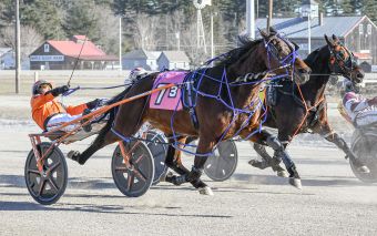 Cumberland, ME – Driver Drew Campbell closed out the Cumberland Raceway meet on Sunday (Dec. 22) with another dominant display, grabbing a natural grand slam while capturing some of the loftiest purses of the meet.