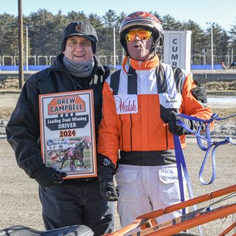 Campbell was recognized in the winner’s circle following the third race for his meet- and season-leading dash wins. The 57-year-old Nova Scotia native had 97 trips to victory lane at Cumberland during the 2024 calendar year, while he grabbed 55 wins during the eight week winter meet. It was the talented reinsman’s third highest career seasonal earnings total with $1.6 million in purses and 226 victories throughout 2024, where he also plies his trade at Plainridge and the other Maine pari-mutuel and fair tracks. Campbell recently eclipsed 6,000 lifetime wins.
