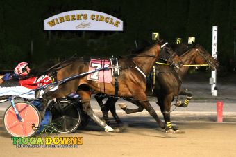 Nichols, NY – Chuckthemillionair (Kyle DiBenedetto) captured the featured $17,000 Open Trot at Tioga Downs on Saturday (Aug. 23).