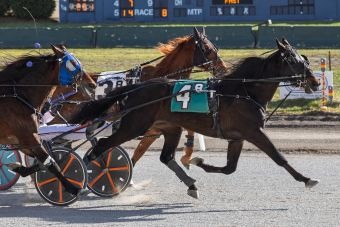 In the $15,500 Open Pace, Davey Day Trader ($13.26) waited patiently in the pocket before eventually getting past the pace setting Lip Reader A by a half length in 1:55.2.