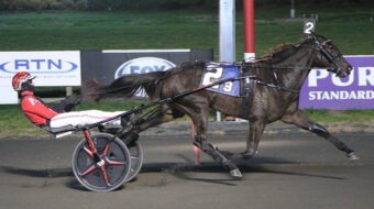 ‘Lindy’ took over at the head of the lane, but Jim Beam tipped off his cover in mid-stretch and gradually kept inching his way toward the leader until he got up on the wire by a head in a lifetime-best 1:54.3. Who’s Eyes Blues (Yannick Gingras) was third.