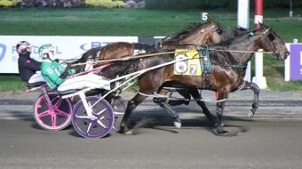 Herecomesdajudge took the $20,000 split (race four) for trotters 4-years-old and younger in 1:54.4 for trainer Julie Miller and her son, driver Tyler Miller.