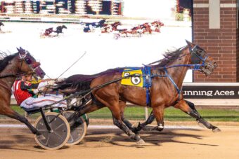 Another one-two punch result was seen in the $65,000 older male pacing division when Antetokounmpo (Easy Again) rallied sharply in the lane to get up by a head over stablemate and last year’s winner SB Bodacious (Rick magee) in 1:54.1 with King Of Aces (Williams Hernandez) home in third.