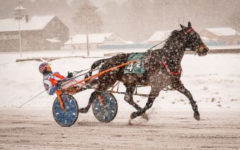 Echos Sharkie lined up in fourth position behind the Wes Brown starting gate ready to roll, with fans squinting through the snowflakes to catch all the winter action. No post position has accounted for more victories than post four at Cumberland this season, with 100 winners springing into action from the center of the racetrack. Echos Sharkie was no different, as the field gapped his cover through modest fractions of :31.2 and to the 1:03 half.