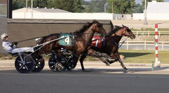 Downbytheseaside filly Beach Babe Hanover (Chris Lems) posted the fastest time among those five divisions, tripping the wire in 1:55.4 to win the second division. The Sam Schillaci trainee left from the rail and settled into the pocket behind leader Fire Country (Tyler Smith), who led at all three calls in :28.3, :58.4, and 1:27. With Moonlight Ride (Ronnie Wrenn Jr.) moving first-up and challenging on the outside, Beach Babe Hanover was third at the three-quarter mark before moving into the passing lane to challenge Fire Country down the stretch. Beach Babe Hanover edged Fire Country by a neck at the line with Standerosa (Aaron Merriman) finishing third. Beach Babe Hanover has hit the board in both starts this season, adding a third-place finish to Monday’s win. She is owned by Schillaci Stables, John Manning, Sam Bova Racing, and Howard Berke.