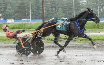Trained by Christopher Dubois for owner Mary Fernald, Dinner Party tripped the soggy timer in 2:03.2 and grabbed his second win in row, paying $4.80. The score added substantial funds to his seasonal tab of five victories and $23,185. Windemere Ryan finished third.