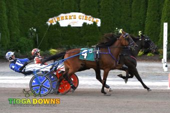 Nichols, NY – Duly Resolved (Tyler Miller) captures the featured $16,000 Open Trot at Tioga Downs on Saturday (Aug. 2).