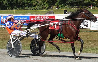 The second division also featured a rail sitter, Who’s Perfect, who also led every step of the way for Aaron Hall in the bike for trainer Valerie Grondin. Winning in 1:59.2 by two lengths, it was that daughter of Western Maverick’s fourth seasonal victory. She is owned and was bred in Maine by Lynn-Marie Plouffe and carries $127,423 on her card. Also the heavy favorite, she paid $2.20 to win. Ghost Of You (Switzer) finished second; Summertime (Harrington) was third.