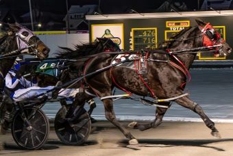 Face The Shadows (Kevin Cummings) got away fifth as Won Surreal Deal (Kyle Cummings) skated through early fractions of :28.1 and :58.3. It was there that Cummings had Face The Shadows out and moving first-over in the breeze and drew almost even with Won Surreal Deal at three-quarters. Face The Shadows eventually made her way past Won Surreal Deal in the turn and entered the stretch on top by a length, and as the girls made their way to the line, Face The Shadows held off a late challenge from Gia’s Surreal to win by three-quarters of a length in 1:57.3.