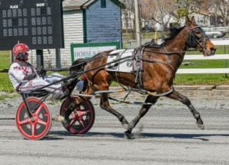 The Sowers stable stampede included the second consecutive score for Demeter N (1:58.1, 2.60). Making the quick turnaround from a Friday (April 24) frolic at First Tracks Cumberland, the 11-year-old daughter of Art Major sat third to a 1:00 half before mounting a timely first-over challenge alongside the front-running Santa Fe Kat (driven by James Doucette). Matching strides up the backstretch, the tandem marched through a tempo-tempting :58.1 back-half before Demeter N slipped clear of her rival by a mere half-length at the wire.