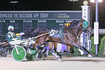 Anderson, IN — Two of Indiana’s finest, Gruesome Twosome and Lets Go Endofaera, staged late rallies to get their noses on the wire first in a stakes filled card Friday (Nov. 15) at Harrah’s Hoosier Park. Seven splits of the Star Destroyer headlined the 14-race card for the four sophomore divisions, headlined by the $57,000 lone division for trotting colts.