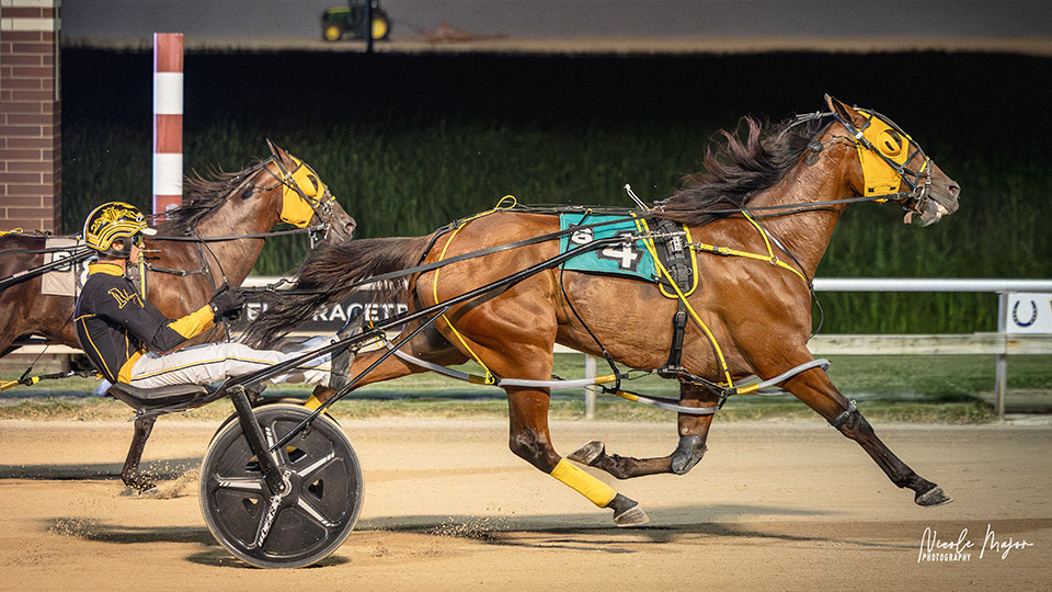 Driver Josiah Miller left the gate alertly with the 5-year-old son of Wind Me Up, and they went to the front before yielding to stablemate Overtheedgeofhonor (Scott Cisco) and then retaking the top right at the :28.3 quarter mile.