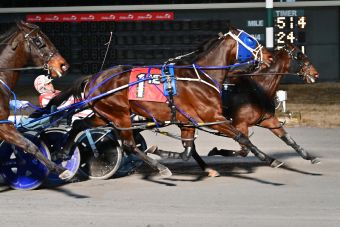 Captaincountrystar controlled the pace of the race and was allowed to back off the half in :56.1, a :28.4 quarter The 8/5 betting favorite Armada Hanover, a winner in his last three starts, angled off the pylons and traveled first-over down the backstretch. Wehadababyetzaboy was towed into a seond-over trip. Itsrockandroll A was in perfect race position to strike from the pocket.