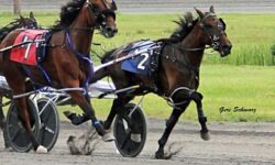 For Turn On The Charm, it was her third consecutive win in Sire Stakes competition. Bruce Clarke trains the offspring of Huntsville for owners Megan Rose Beauchamp and John Coffey.