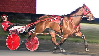 Roger Plante Jr. angled Layton Hanover out from third at the end of a :27.2 first quarter to take aim at early pacesetter Playin For Real (driven by Justin Walters) and overtake him for the lead with a circuit to go. After strolling through middle splits of :56.4 and 1:24.4, the 7-year-old Captaintreacherous gelding faced a first-over challenge from Sheer Terror (Jonathan Roberts) through the far turn and into the homestretch. Layton Hanover responded to keep Sheer Terror three-quarters of a length at bay, sealing his third win of the season and the 26th of his career. R N B Band (Lucas Myers) followed live cover to finish third.