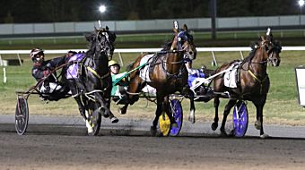 Louprint got the lead midway on the first turn and brought the field to the opening quarter in :27.1. Fallout and driver Tim Tetrick, though, were already closing in and took over the top spot on their way to a :55.2 half. Fallout remained in front at three-quarters, reached in 1:22.3, but faced pressure from Louprint as they came out of the final turn.
