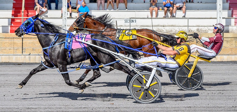 In the other male trot, Tremaine Harding’s Harding Boy dominated in the mile’s first half and carried a 15-length lead over Seminole Breeze as the field passed the grandstand in 1:01. Most of that margin disappeared in the second half but at the finish, Harding Boy was still on top by 1-1/2 lengths. The winner crossed in 2:02.3 with William Carter in the bike for trainer Mike Whitaker.