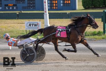 Owned by the P T Stable and trained by Gareth Dowse, the 5-year-old gelded Lyons Surfing (Stay Hungry-Surfside Sexy) has now won eight times in 19 tries on the campaign. The victory pushed his 2025 earnings to $76,010 and to $373,110 in his career. He paid $14.80 to win.