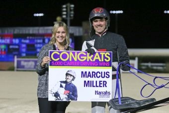 Anderson, IN – Driver Marcus Miller reached a major milestone on Thursday (Oct.16) at Harrah’s Hoosier Park, notching his 5,000th career driving victory during a four-win evening on the 14-race program.
