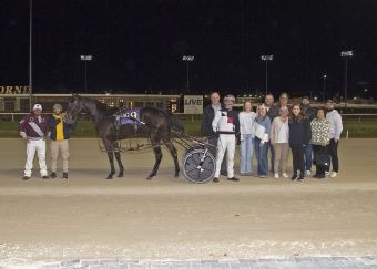 The final event on the Night of Champions card was the $83,000 Beulah Dygert Memorial for 3-year-old filly trotters as trainer Steve Searle sent out four starters in the race, including favorite Lou’s My Number. It was a different Searle entrant who set the early fractions as Lous Avalon made the lead, through a quarter in :28.4 and half in :57.3. Chased into the far turn by a pair of Curt Grummel trainees in Almost Home and Gypsy Rose Lou, Lous Avalon led the field into the stretch after three quarters in 1:27.1. In the lane, the pace gave way as Lou’s My Number was guided by Casey Leonard to the front, rallying to win in 1:55.4. Kays In Charge closed late for place, followed by What a Legacy. Lou’s My Number returned $3.60 to win.