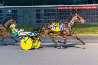 Just before the top of the stretch, Just Applause broke stride, enabling Odds On Put Option to angle off the pegs at the eighth pole and overtake Warrens Charm to win by a widening 1-1/2 lengths. Meemaw’s Column (Russell Foster) finished third, another 6-1/4 lengths in arrears.