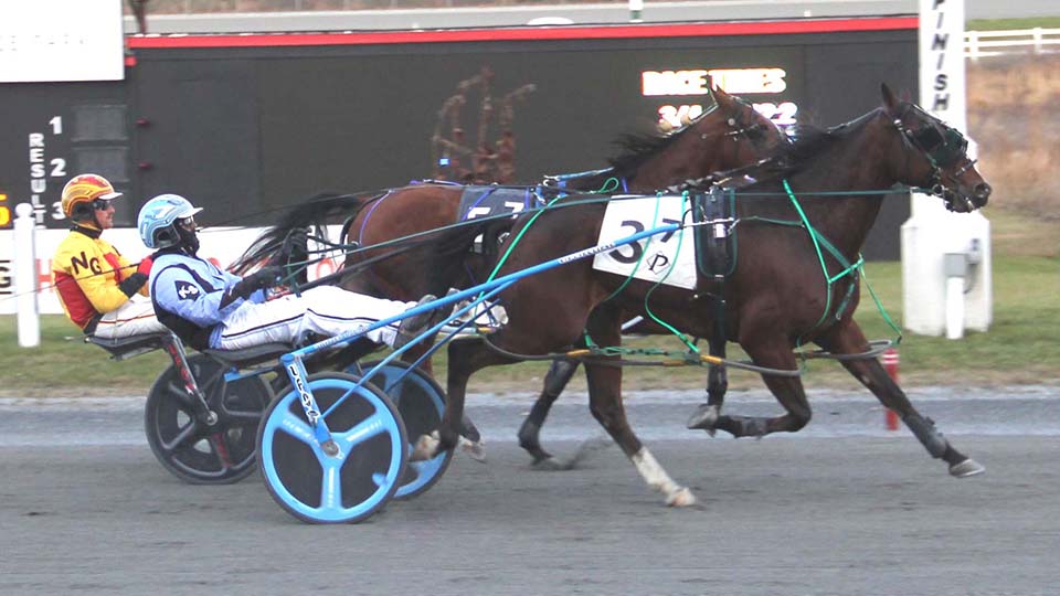Plainville, MA — P L Pasquale got his third win in a row on Thursday (Nov. 20) at Plainridge Park despite moving up in class each week, taking a new lifetime mark in the $25,000 Baystate Special.
