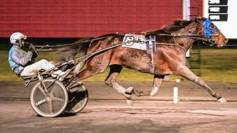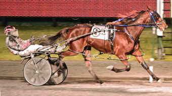 In the Fillies and Mares Open Handicap Pace, Phoenix Rising and driver Frank Milby used two moves to seat 1-5 favorite Lofty Treasure in the pocket with a circuit to go. Once in control, the 4-year-old Movie Idol-Scarlet Pandemic mare traveled unopposed and beat Lofty Treasure (driven by Trae Porter) by 1-3/4 lengths in 1:52.3, equaling her lifetime mark. Dice Dice Baby (Roger Plante Jr.) finished third after an unsuccessful first-over bid.