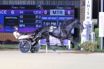 After Meadowbrook Ashley led to three-quarters in 1:27.2, Dangoodfeelin exploded out from behind, trotting home in :27.3 to win by four lengths in a career best 1:55.3. Hot Martini (Ricky Macomber Jr.) wore down Meadowbrook Ashley late to get up for second.