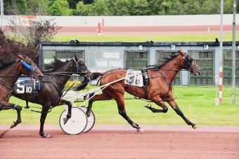 Wilkes-Barre, PA – On a day not favorable to front-end horses at Pocono Downs at Mohegan Pennsylvania, the International Moni sophomore gelding Sainthood came first-over, ducked to the inside, then moved up in the famous Pocono Pike to catch pacesetting favorite Royal Emeralds in 1:54.4 in the $15,000 featured trot on Monday afternoon (Aug. 12).