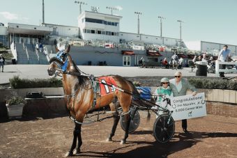 A race earlier, 43-year-old Jim Marohn Jr. won for the 6,000th time in his sulky career, bringing home the Bettor’s Wish sophomore gelding Odds On Wildfire to a three-quarter length decision over Rio in a lifetime best 1:49.4 in a $17,000 pacing co-feature for developing horses. Trainer-owner Geovany Hernandez has an improving horse who has now won half his 18 sophomore starts after not racing at two.