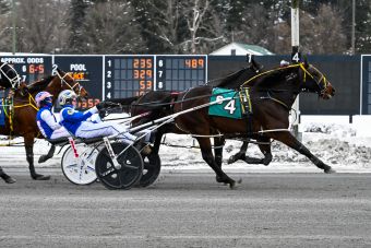 On Saturday (Feb . 21) afternoon, Shawn Gray picked up the catch-drive behind Frisco Bay N who started from post four in the six-horse feature. Gray flashed speed with the New Zealand-bred pacer who was pressed nearly every step of the way while posting fractions of :27.1, :56.4 and 1:25.2.