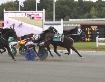There was a major upset in the $20,000 upper-level conditioned trot when the grossly overlooked Yucatan Party Man (Mitchell Cushing) left from post seven at 24-1 and set fractions of :27.2, :55.3 and 1:24.2 before holding off a strong challenge from the favored Cruising Tom (Matty Athearn) in the stretch to win by a nose in season’s best 1:54.