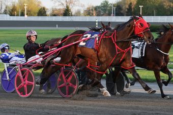Tritton used Silk Cloud A in the early going but was overtaken quickly by Walkin On Sunshine (Scott Zeron) before the opening bend. Coastal Babe N, a two-time winner in the series, was looped on the first turn, but Yannick Gingras got the mare in gear and secured the front shortly before the 26.3 first quarter had been passed.