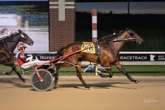 The other freshman winners included Swinging On Over (Roland, $3.80) in the $10,000 pacing colts ‘B’ division, Thiskidcanfly (Luke Plano, $4.80) in the $10,000 fillies ‘B’ pace in 2:02.1 and SV Rough And Tough (Chad Svendsen, $3.60) in the $14,000 freshman ‘B’ trot in 2:03.3.