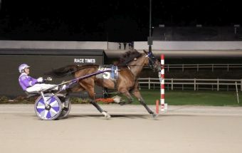Leaving the fifth post position, Sugar Instead and Brett Miller quickly settled into the pocket behind Jurassic Hattie (Kurt Sugg). Fractions to the half came in an easy :28.1 and :58.2. Miller confidently urged 1-5 Sugar Instead first-up at the 1:27 three-quarters pole. The daughter of Volstead took control at the top of the stretch, cruising to a 4-3/4 length win in 1:55.2.