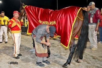 Following the race, My Hero Ron was celebrated in a winner’s circle ceremony, where his shoes were pulled for the final time.