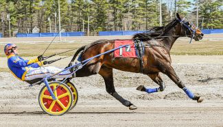 Cumberland, ME – Driver Alex MacDonald got his first wins of the season on Saturday (April 11) at Cumberland Raceway when he piloted 11-1 longshot to a wire-to-wire victory in the $7,000 featured ‘winners over’ trot.