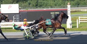 Torrid Saint A kept Gandolf The Black at bay at three-quarters and around the last turn before entering the stretch with a one length advantage. But he wasn’t home yet as I’m Not Outlaw N found room at the pegs and started pacing furiously as the pair barreled towards the line. I’m Not Outlaw N kept digging hard but Torrid Saint A refused to lose and hung on by a head in 1:51.3, taking a new lifetime mark.