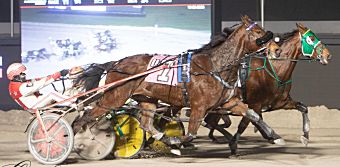Northfield, OH — Treacherous Penny returned to her winning ways on Saturday (Dec. 23) with a gutsy victory in the $18,000 co-featured Filly and Mare Distaff at MGM Northfield Park.