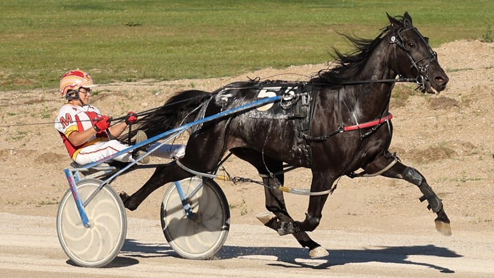 In the afternoon’s 15th race, Two Birds Onestone, a 5-year-old Black Daniels-She B Jeebeez gelding left alertly from post 5 and settled on the lead. He and Main never looked back following fractions of :27.4, :55.2 and 1:24.1 and went on to win by a widening 4-3/4 lengths in 1:53. This established a new divisional and overall track record at the Hastings, Mich., oval. Both records were lowered 1-2/5 seconds from the previous week.