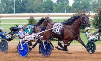 Miki And Minnie (Peter Wrenn) broke her maiden in the lone $30,000 third leg of the Kentucky Commonwealth Series for freshman filly pacers. Accede (Gingras) was second and favorite Three Times Bettor (Andrew McCarthy) was third.