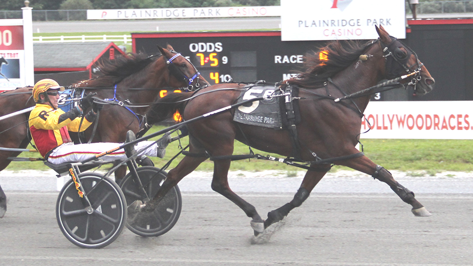 Plainville, MA — After two consecutive third-place finishes in the track’s top class, Westbeach found solace in class relief and went coast-to-coast in Thursday’s (July 27) featured $20,000 conditioned pace at Plainridge Park.